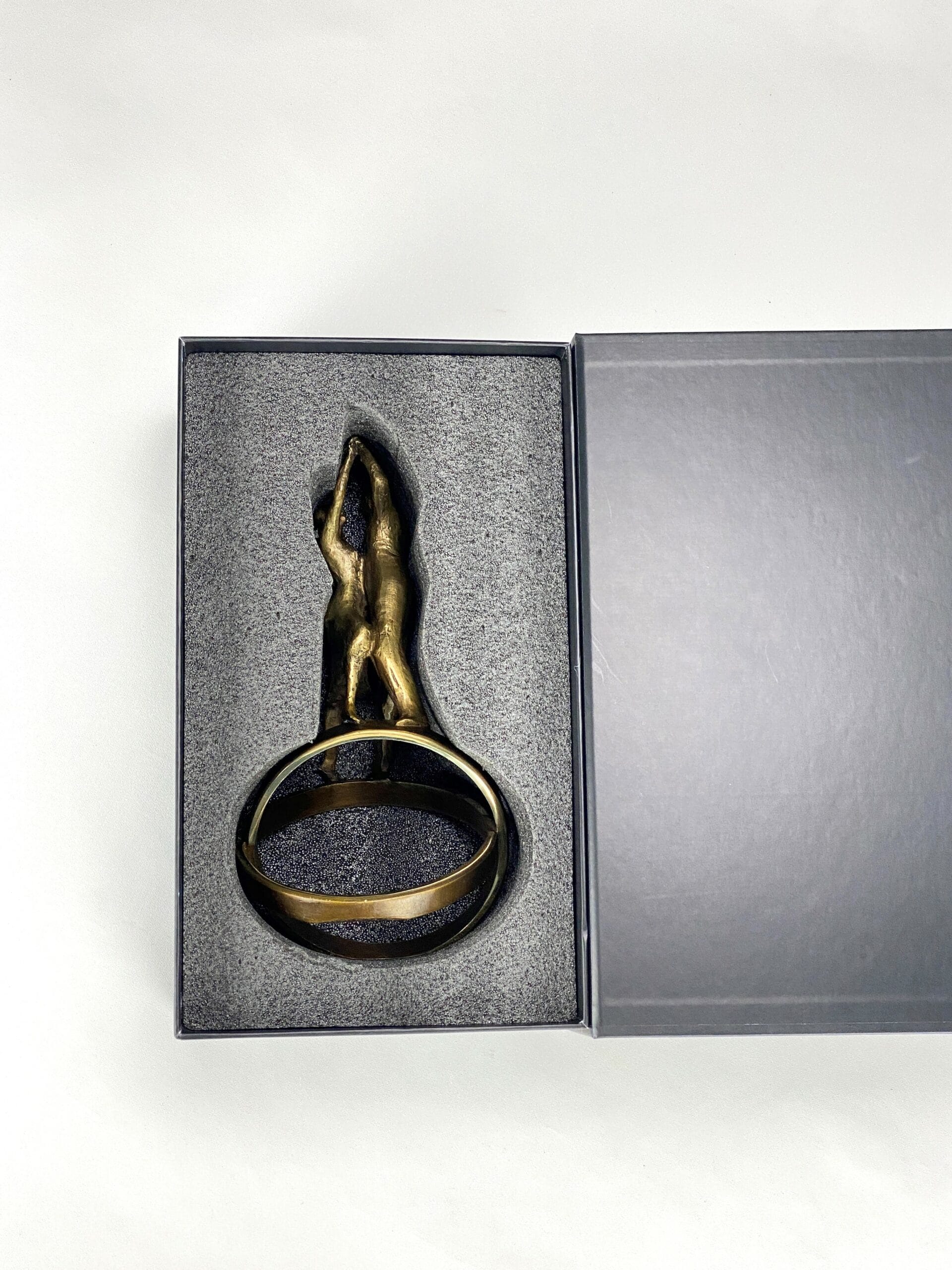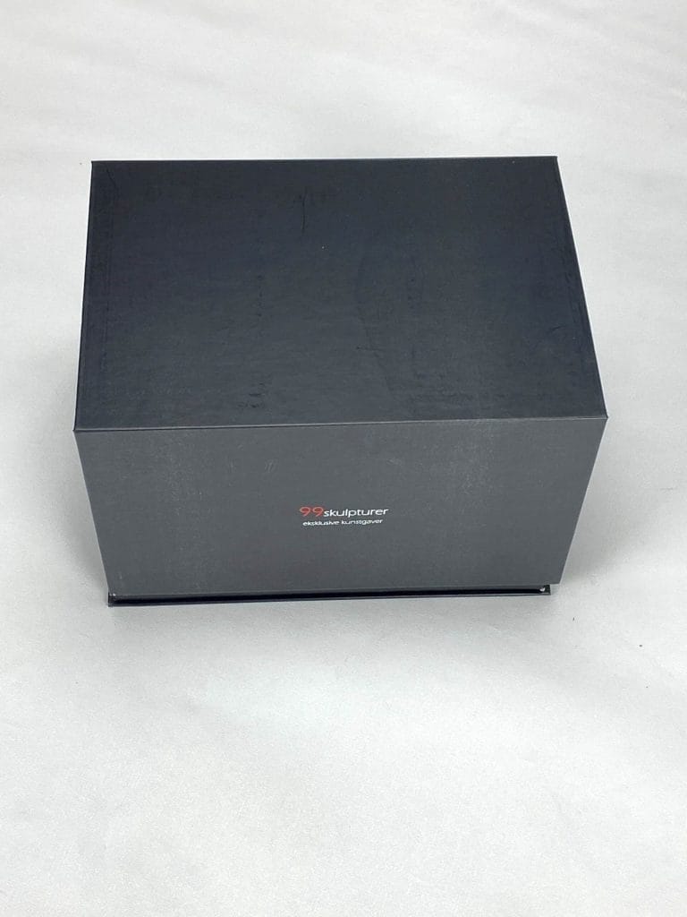 Skulpturen levereras i en fin presentask med beskrivning av konstnären och konstverket.