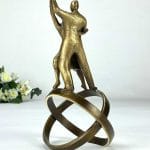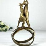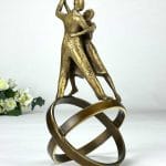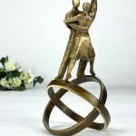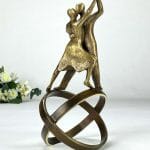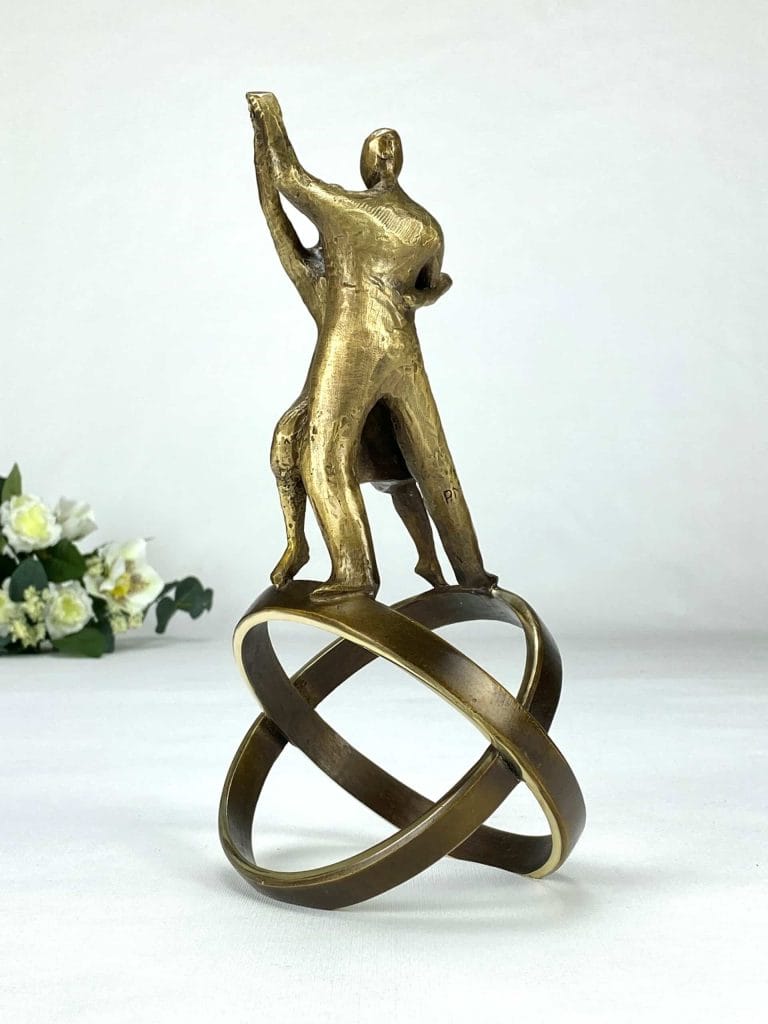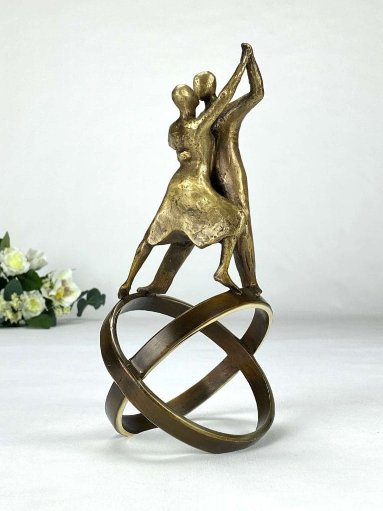 En mycket vacker och elegant bronsskulptur som hyllar livet och kärleken. Skulpturen förenar rörelse, passion och symbolik i en enastående harmoni. Tangon symboliserar intimitet, samarbete och livets dynamiska rytm. De korsande ringarna representerar både jordklotet och föreningen av två själar, som i ett äktenskap eller partnerskap. Livets Dans fångar det vackra samspelet mellan två människor som dansar genom livet i en evig rörelse av glädje och kärlek. Den påminner oss om att livets dans handlar om att hitta vår balans och skapa oförglömliga ögonblick tillsammans med dem vi älskar.