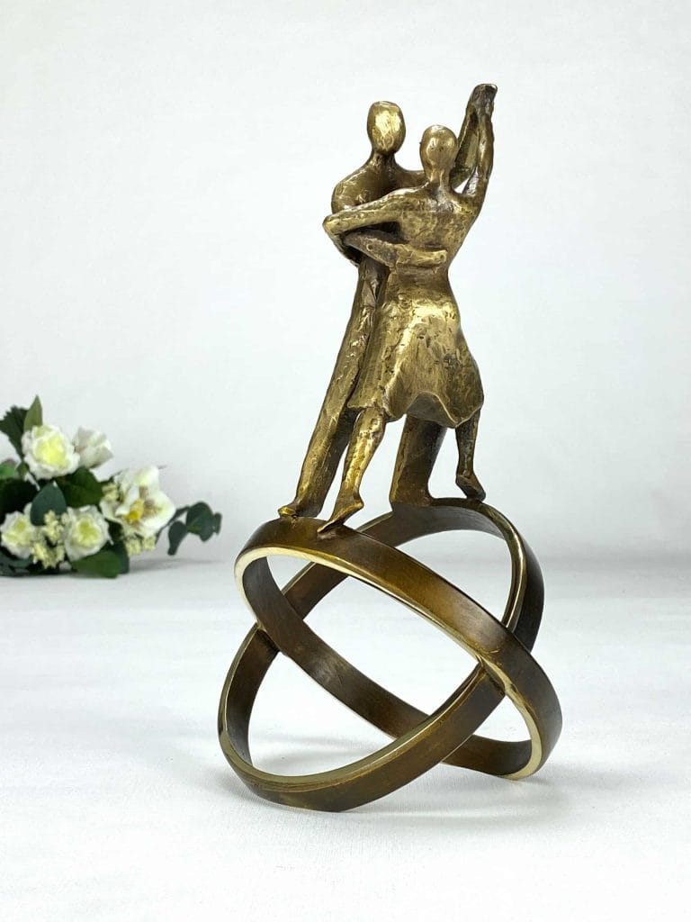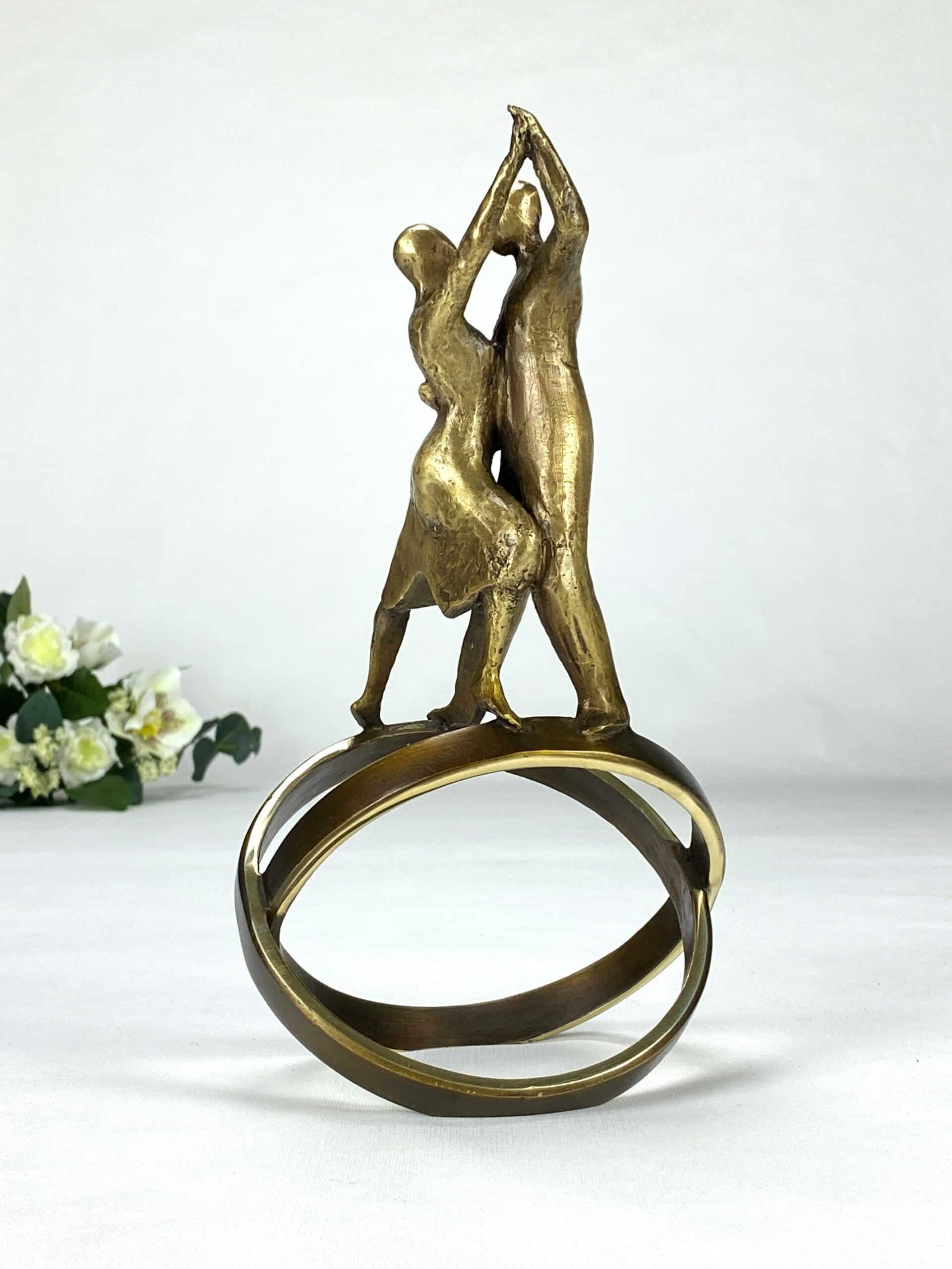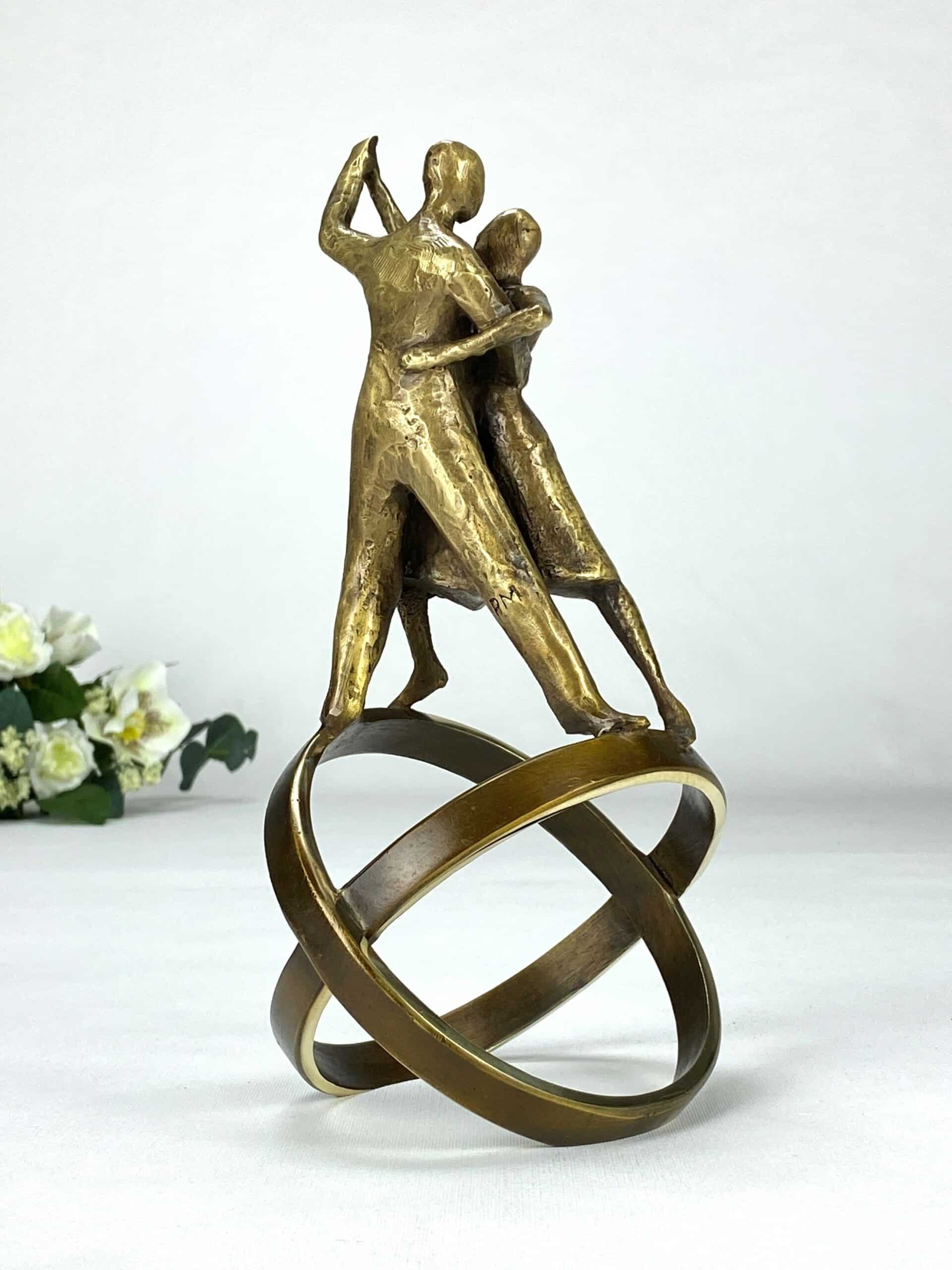 En elegant och sensuell bronsskulptur som firar kärleken, samspelet och livets rörelse. Livets Dans förenar tangons passion med symboliken i de korsande ringarna – en bild av två själar förenade i ett gemensamt liv, fyllt av balans, närvaro och oförglömliga ögonblick.