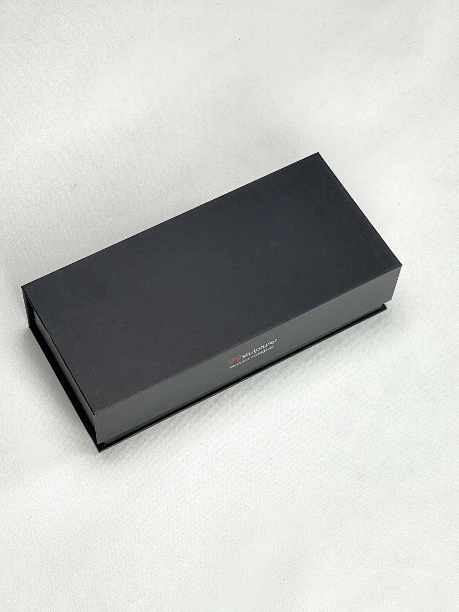 Skulpturen levereras i en fin presentask med bifogad beskrivning av konstnär samt konstverk.