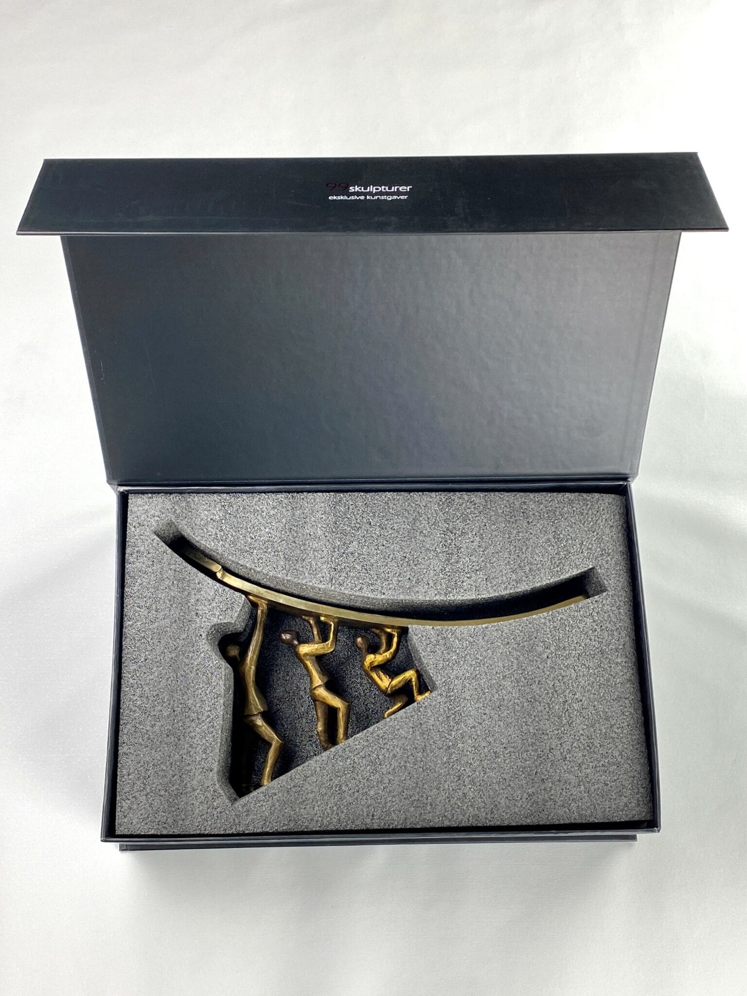 Skulpturen levereras i en fin presentask med beskrivning av konstnären och konstverket.