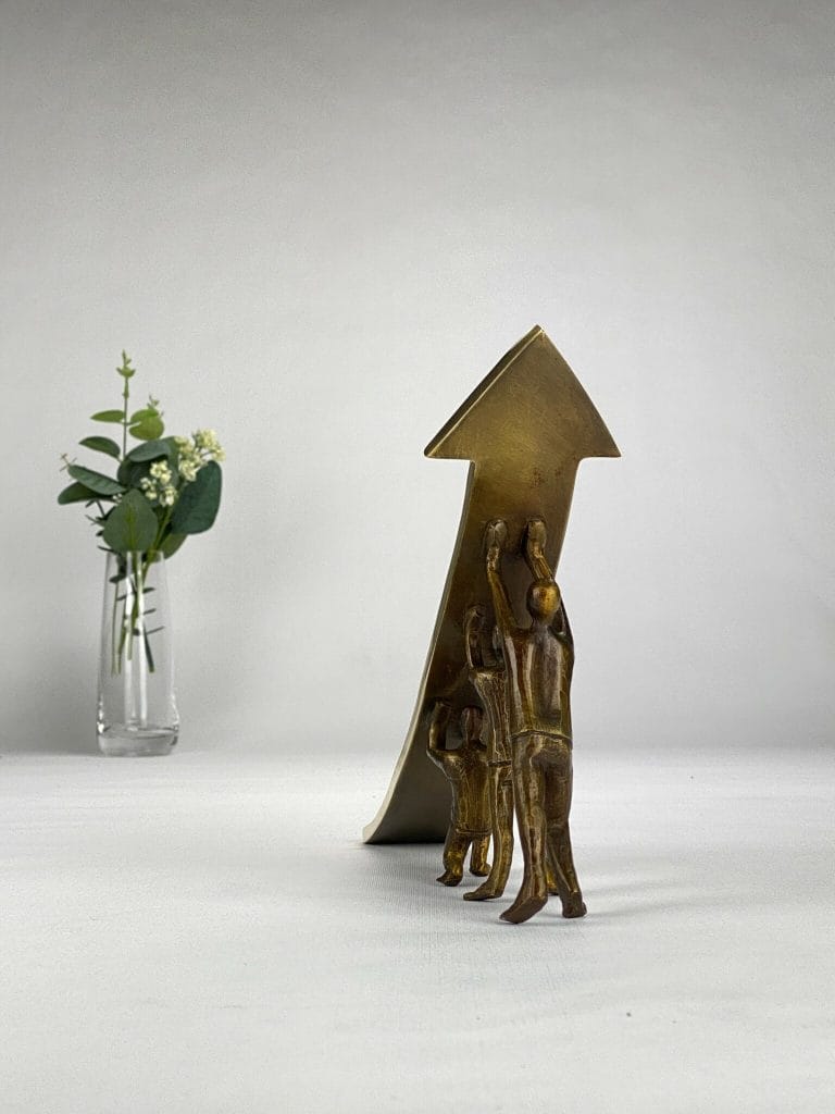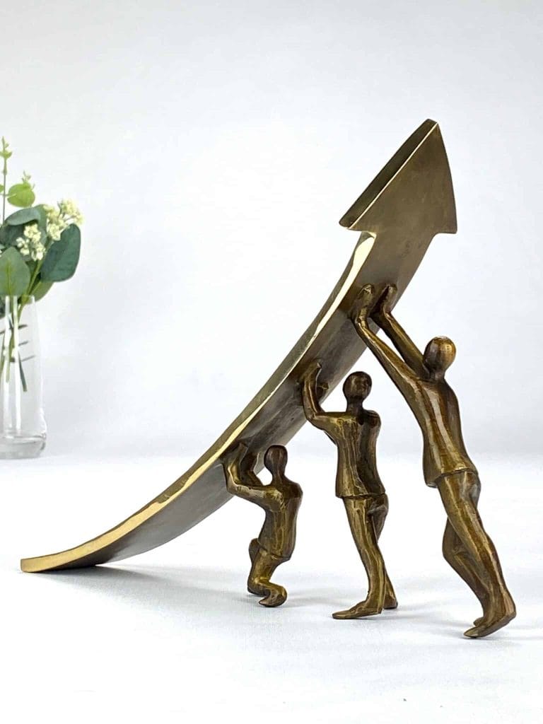 En stark och meningsfull bronsskulptur som symboliserar samarbete, sammanhållning och värdet av att lyfta tillsammans. Gemensamt Mål hyllar de ögonblick då vi – genom tillit, samarbete och gemensamma insatser – övervinner det som tidigare verkade omöjligt.