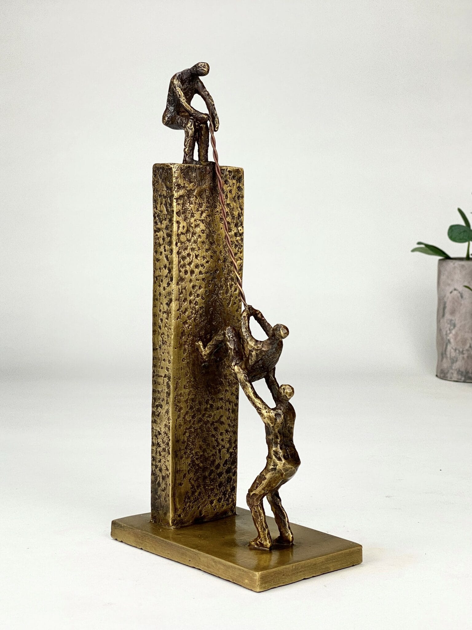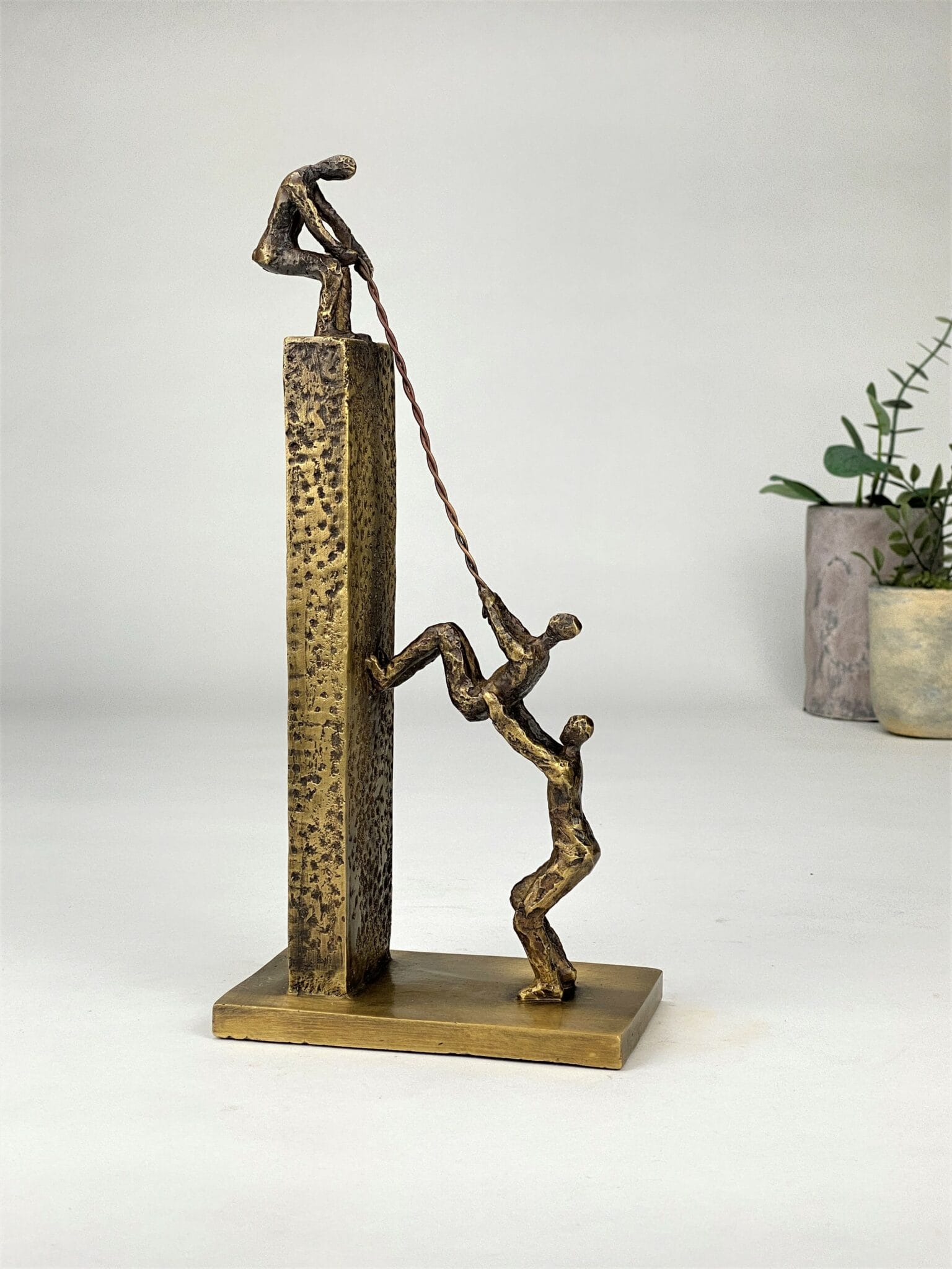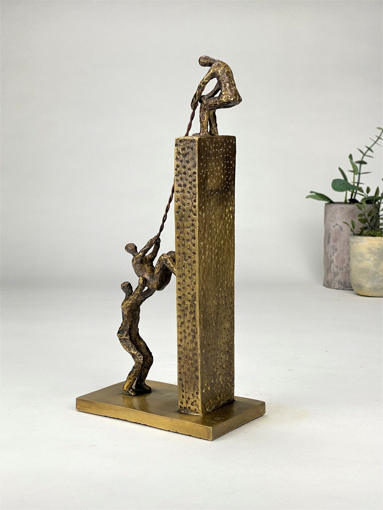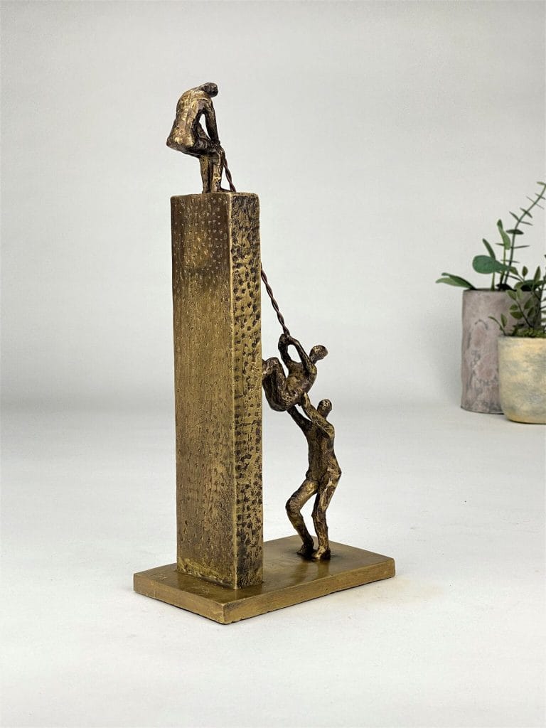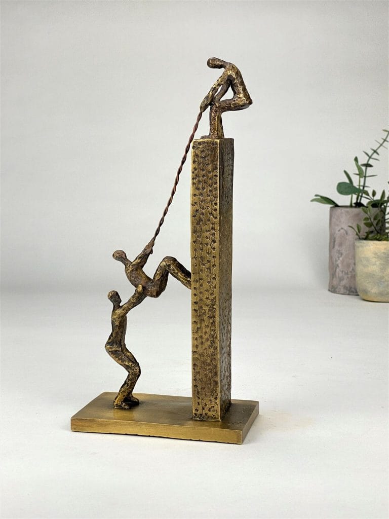 Next Level är en symbolisk och stark bronsskulptur som hyllar samarbete, gemensamma mål och förmågan att lyfta varandra. Ett konstverk med flera tolkningsnivåer – perfekt som erkännande av team, ledare eller enskilda personer som har skapat resultat genom att dra nytta av gemensamma styrkor.