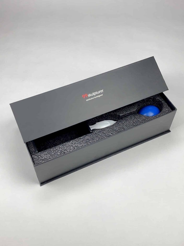 Skulpturen leveres i en smuk gaveæske med vedlagt beskrivelse af kunstner samt kunstværk.