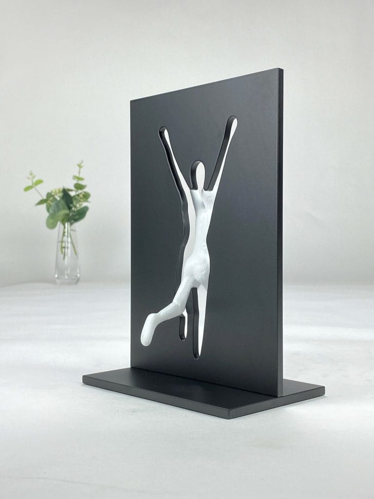 En stark och stilfull skulptur som hyllar viljan att bryta gränser och följa sina drömmar. Spränga Ramarna är en symbol för mod, handlingskraft och tron på att inget är omöjligt för den som verkligen vill.